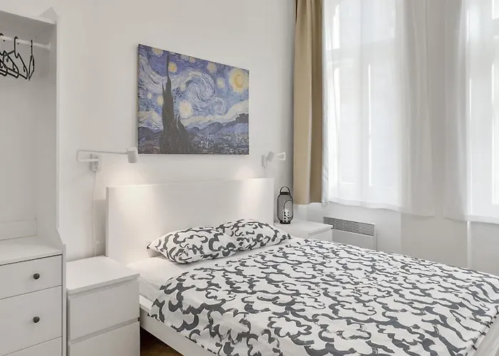 Nebesky Apartman van 60 m^2 ligt binnen zo'n dan 10 minuten rijden van het winkelcentrum Palladium.